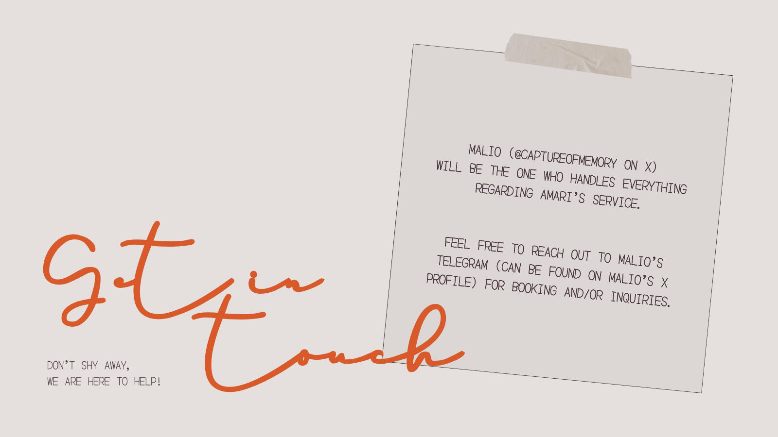 Amari is both a full-time student and part-time worker. When Amari has agreed to spend their time with you, it means that Amari has nothing big planned for the day, but it doesn't close the possibility of them having some errands or stuff to attend every now and then. Fret not, Amari will make sure to let you know beforehand if they need to be away for more than 60 minutes (one hour).